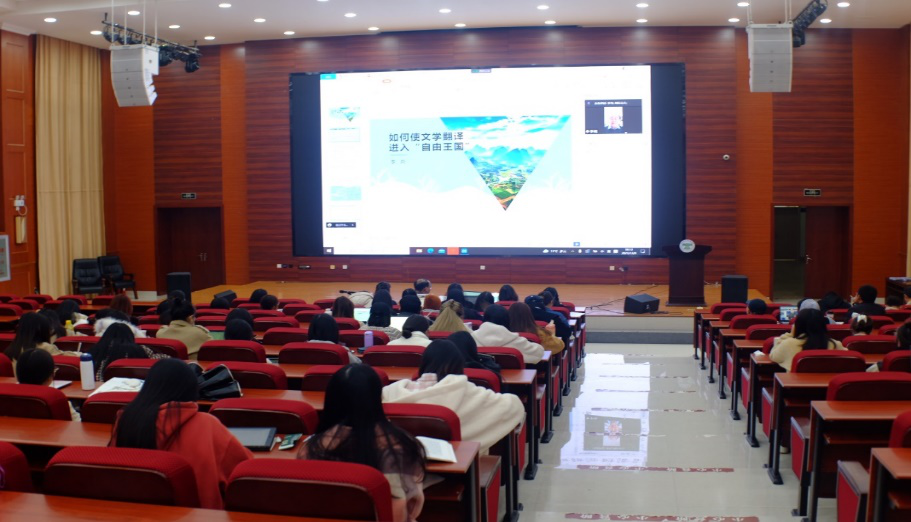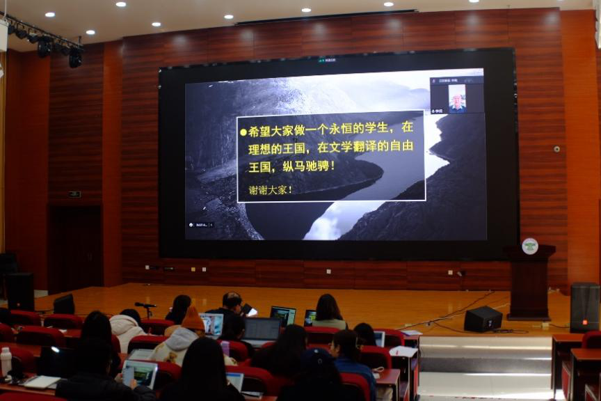 本次讲座主题为“如何使文学翻译进入‘自由王国’”,由英语系副系主任刘衍博士主持,采用线下与线上相结合的参会方式。