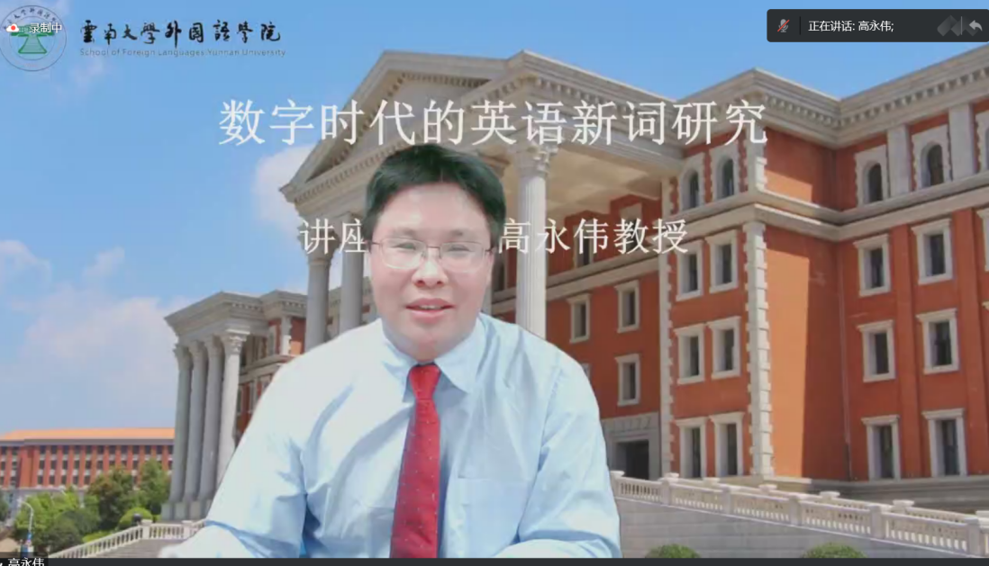 2022年11月4日下午,复旦大学外文学院院长、博士生导师、高永伟教授应邀为我院师生做了一场题为“数字时代的英语新词研究”的精彩讲座。本次讲座是“云南大学百年校庆外国语言文学文化系列讲座”之一,采用网络会议的方式进行,我院在303会议室设置了分会场。讲座由我院副院长骆洪教授主持,我院和兄弟高校百余位师生以线下何线上的方式聆听了讲座。