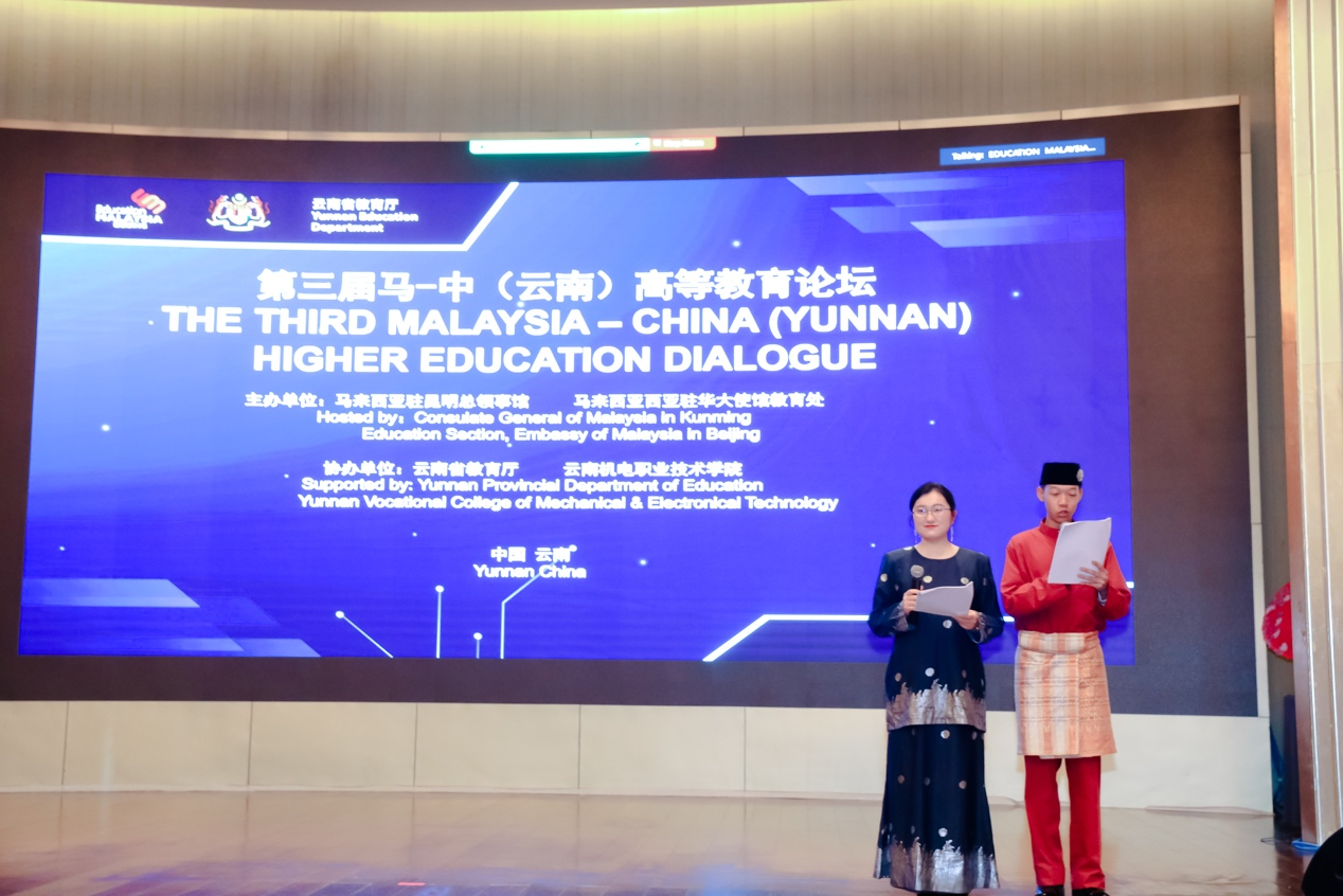 2022年11月9日,第三届马来西亚-中国(云南)高等教育论坛在昆明中心皇冠假日酒店开幕。第三届马来西亚-中国(云南)高等教育论坛由马来西亚驻昆明总领事馆与马来西亚驻华大使馆教育处联合主办,云南省教育厅与云南机电职业技术学院协办。会议围绕“高等教育产业的国际化是推动国家课程可持续发展议程催化剂的组成部分”展开,共分为“语言”和“职业技术培训”两个主题。来自马来西亚、中国云南省的近十所高校的演讲嘉宾以及五家国内外知名企业领导作为主讲人出席,云南省外事办、云南各地州外事办、云南各高校及企业代表、马来西亚各高校及企业代表参会。我校外国语学院党委王益广书记、国际合作与交流处沈芸副处长代表学校出席论坛。
