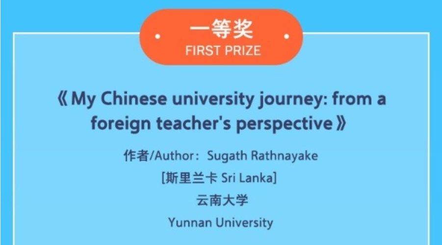 近日,我院僧伽罗语外教苏嘎特先生在《中国日报》社主办的“我的校园故事”主题征文活动中荣获一等奖。该活动主要邀请外国留学生讲述在华留学经历、所见所感所悟、心路历程和美好记忆,旨在展示真实、立体、全面的中国,从而推动新时代国际青年人文交流。活动收到了来自115个国家共计1474份作品。苏嘎特先生以在云大工作、生活的经历为基础,写就《我的中国大学之旅——一名外籍教师的视角》(“My Chinese university journey: from a foreign teacher’s perspective”)一文。该文从1000多份参赛文章中脱颖而出,荣获一等奖第一名。