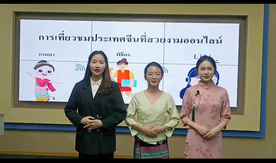 本次大赛由云南省教育厅指导,云南省高校外国语言文学类专业教学指导委员会主办,云南农业大学、上海外语教育出版社共同承办,上海外国语大学跨文化研究中心提供学术支持。本次比赛共设本科英语组、本科泰语组两个组别,每所学校每个组别最多选派一个参赛队伍参赛,共有来自云南大学、云南师范大学、云南农业大学、昆明理工大学、云南财经大学、西南林业大学等29所本科高校的126名选手组成42支参赛队伍参赛。我院泰语参赛团队于2022年12月3日提交主题为《云游美丽中国》的参赛视频。视频以泰国朋友线上云游美丽中国并在此过程中爱上中国、决定来到中国深造的故事为主线,展示了寺庙旅游禁忌、饮食习惯差异、支付方式差异等跨文化方面的案例。三位同学对案例进行了生动演绎,在此基础上分析了案例中所展现的中泰文化冲突,提出了团队的解决方案,突出了文化自信。